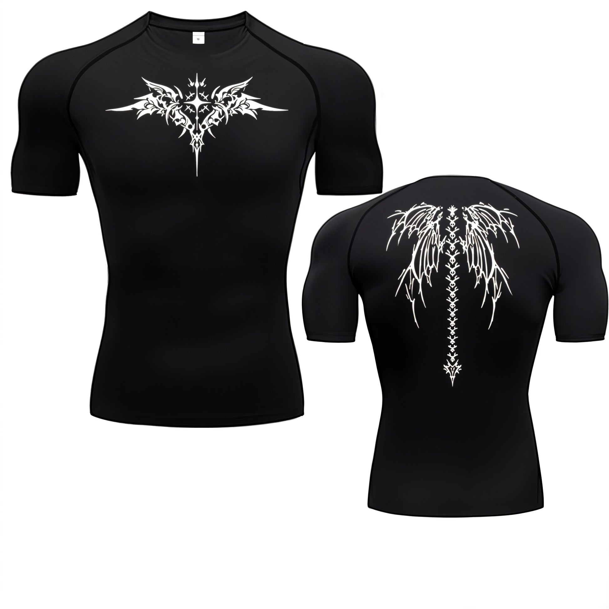 The Seraphim Compression Shirt features a unique design on the front and a striking wings motif on the back, inspired by the Seraphim—angelic beings renowned for their divine power and protection. Crafted from quick-drying, breathable fabric, this shirt ensures optimal moisture management and ventilation during intense workouts. Its compression fit supports muscle stability and enhances circulation, helping you train with strength and endurance. Available in sizes S to 3XL, it offers a precise, comfortable fit for athletes seeking both performance and symbolic inspiration.