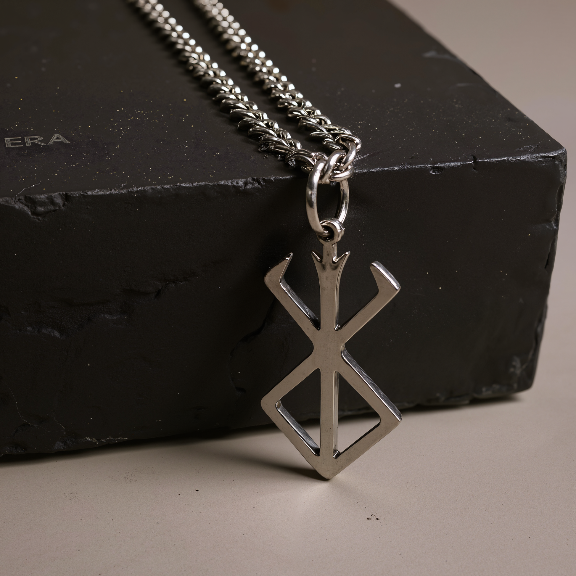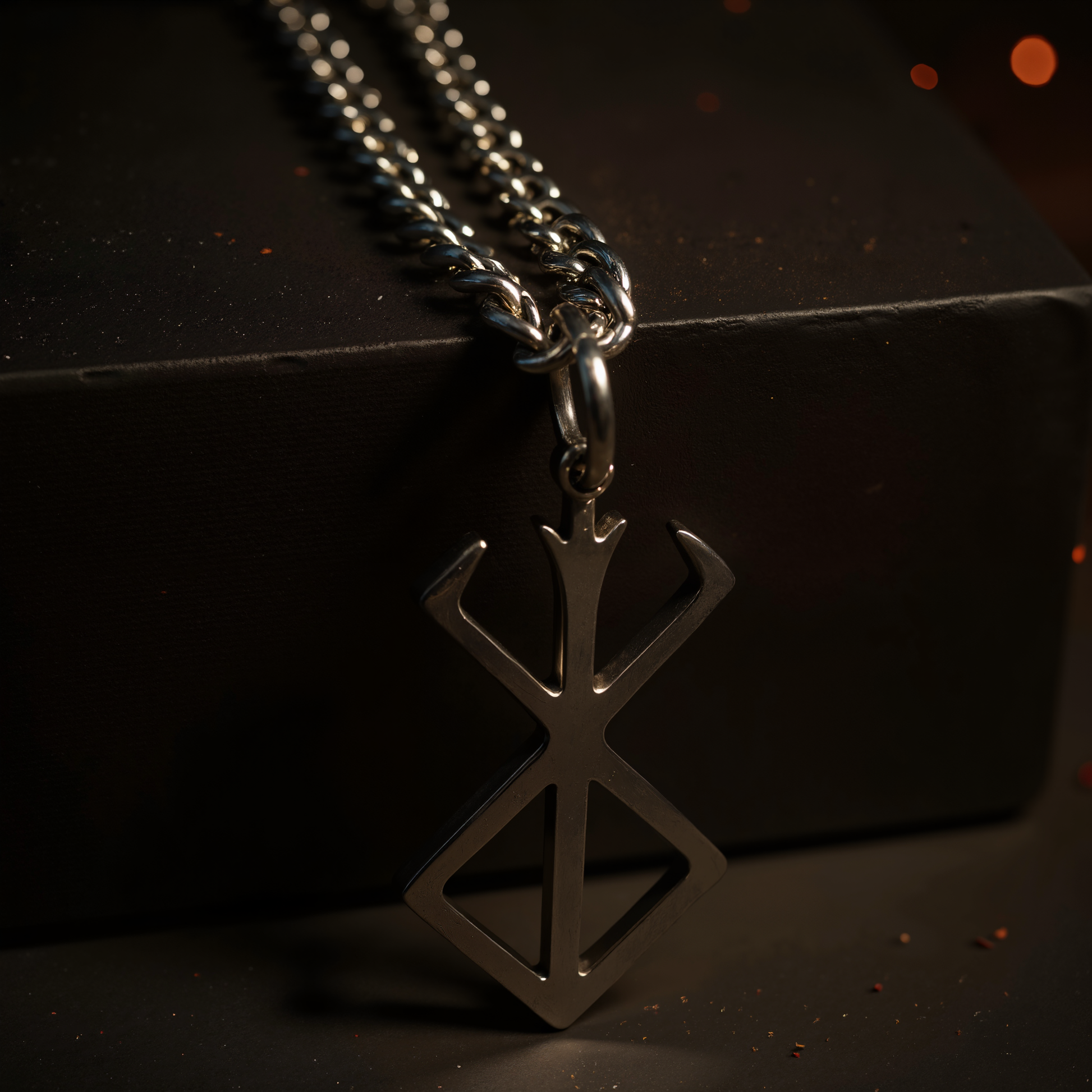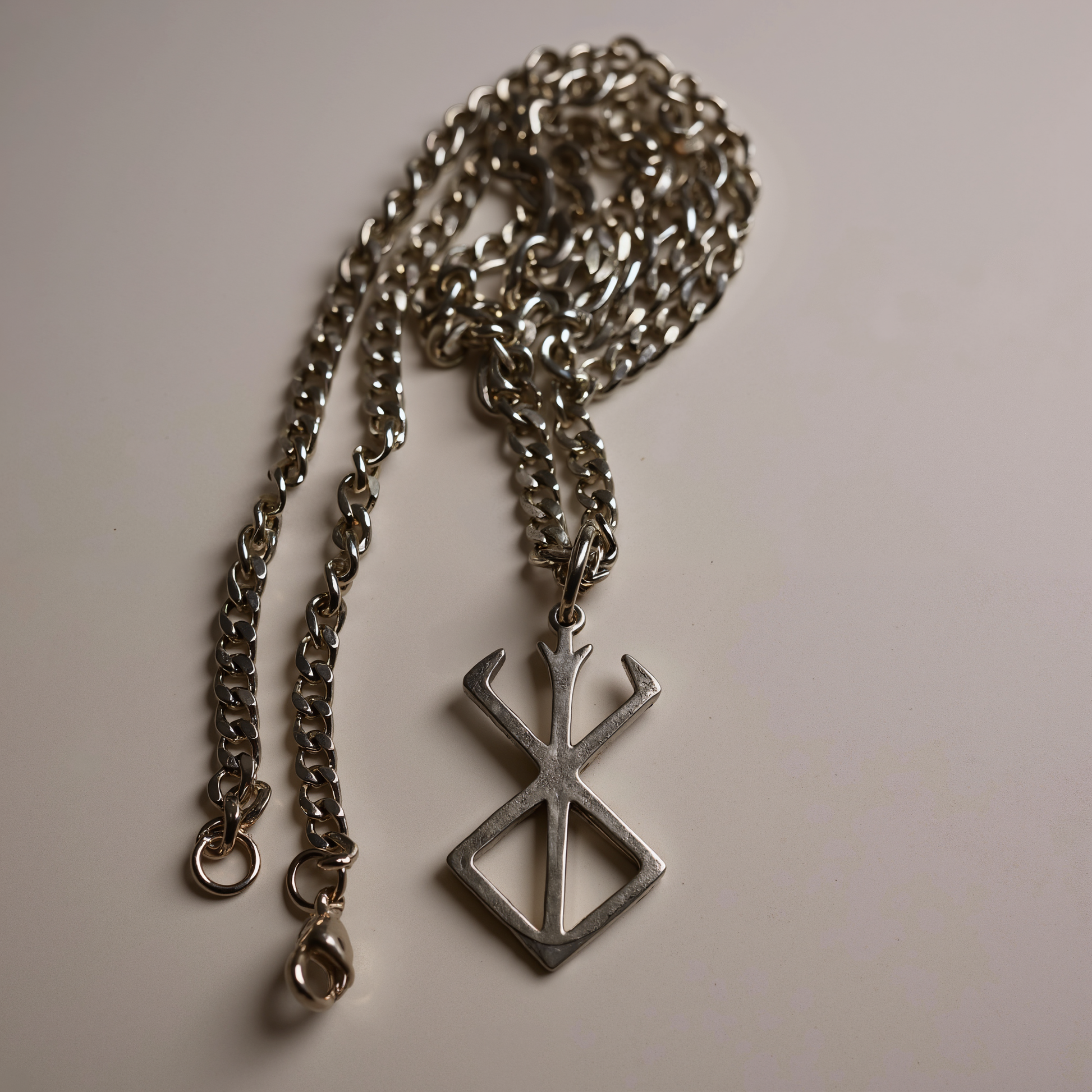 This stainless steel necklace features a finely crafted pendant inspired by the iconic Berserk anime's Mark of Sacrifice. Designed for enthusiasts and collectors, the 4mm thick, 60-cm chain offers durability and a bold statement. Its sleek finish ensures lasting shine, making it an ideal gift for fans seeking a blend of anime symbolism and sturdy craftsmanship. Perfect for everyday wear or as a unique addition to any jewelry collection.